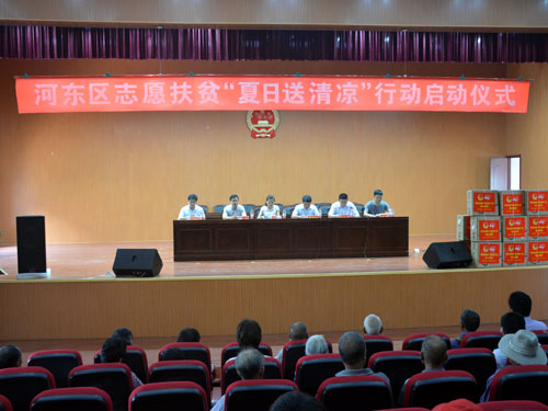 但是在鄉村,在一些孤寡老人的家中,他們或許連一臺電風扇都沒有。當我們舒服的呆在空調房時,他們卻正在忍耐夏日的苦楚。為了能夠讓他們度過一個清涼的夏日,為了能夠讓他們感受到社會大家庭的溫暖;就在昨天河東區志愿扶貧“夏日送清涼”行動正式啟動。