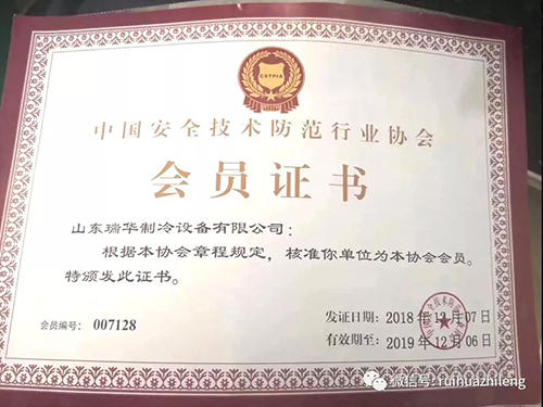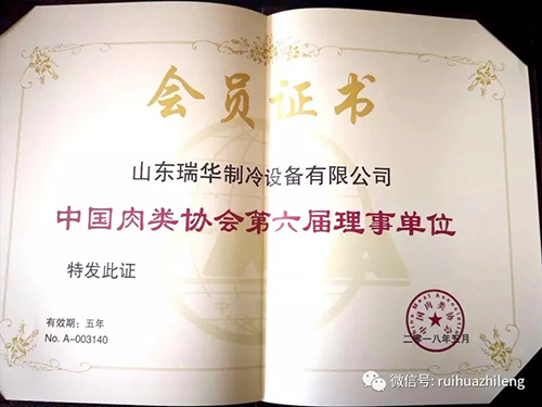 近日,瑞華制冷再獲兩項殊榮,中國肉類協會第六屆理事單位、張總任中國肉類協會第六屆理事。同時瑞華制冷通過考核,獲得中國安全技術防范行業協會頒發的安防工程企業資質證書,涉及制冷行業范圍內的安全技術防范體系設計、施工及維護。