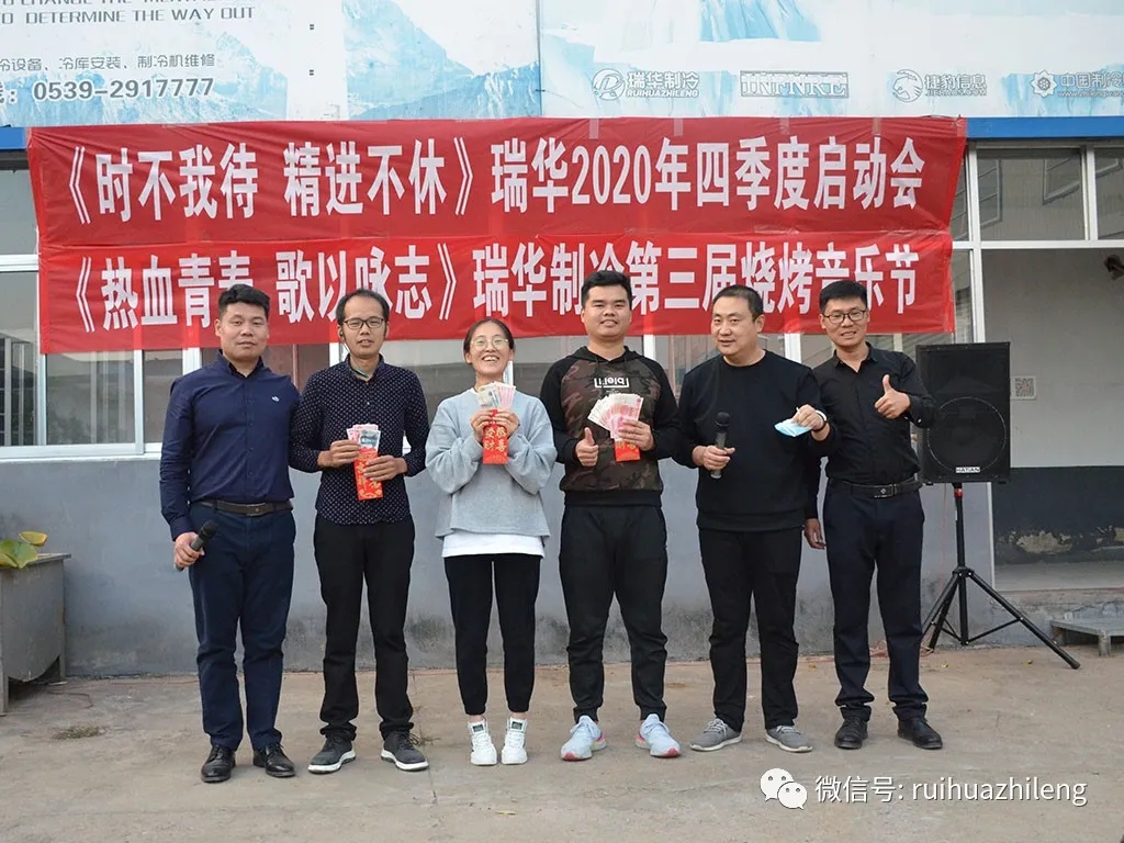 2020年10月9日,結束8天的國慶中秋長假,瑞華制冷迎來了返工第一天。上午,大家忙著處理假期內的部分工作;下午,來到倉儲中心開啟下午的活動。分別進行了熱身游戲、第二屆配貨比賽、四季度啟動會與第三屆K歌燒烤音樂節活動。大家共同度過了美好的一天,為國慶長假畫上了圓滿的句號,同時開啟了四季度大幕。