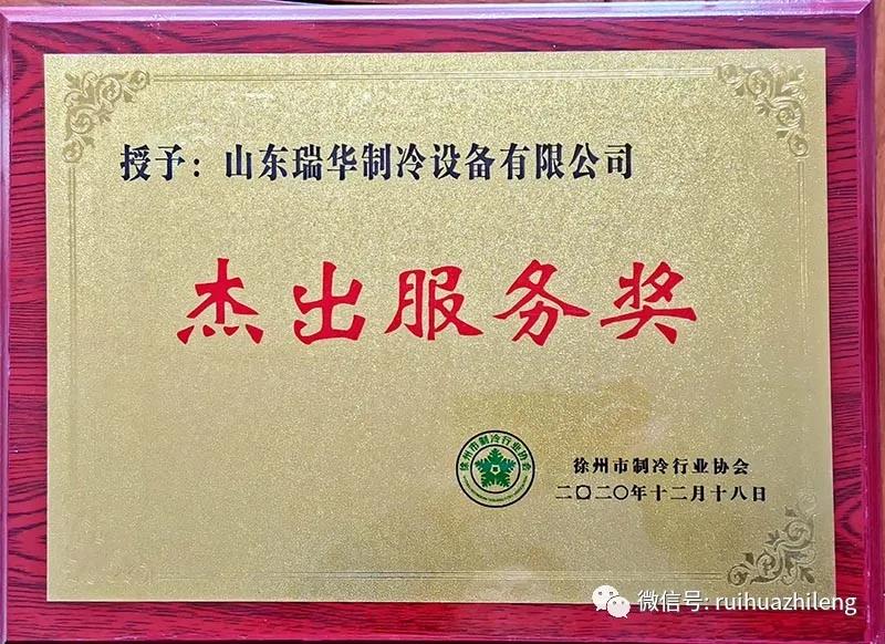 12月18日,參加淮海經濟區第五屆制冷暖通行業峰會,徐州市制冷協會授予瑞華制冷“杰出服務獎”。