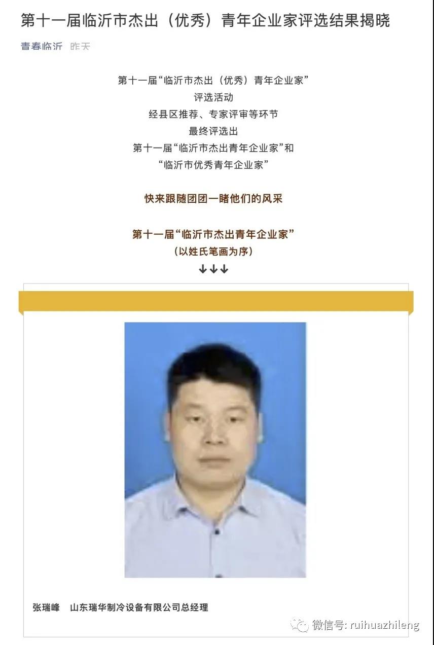 2019張總獲得臨沂市杰出青年企業家