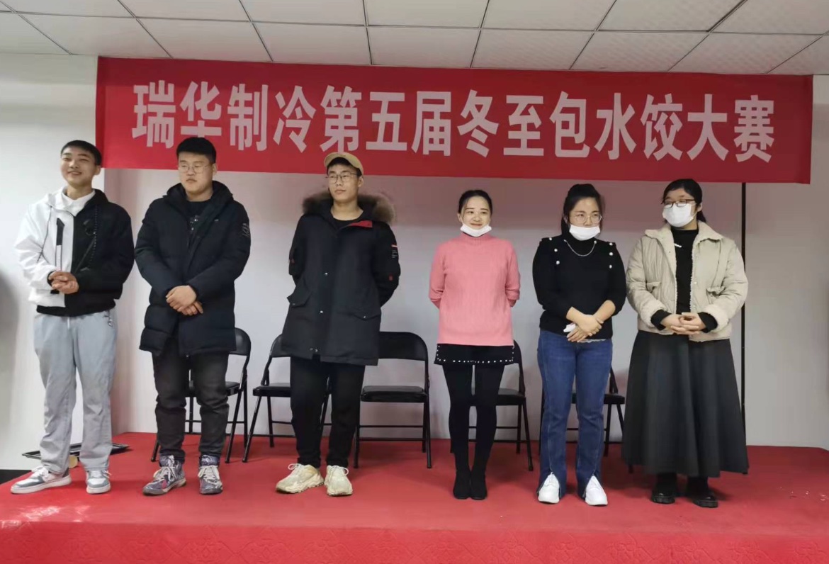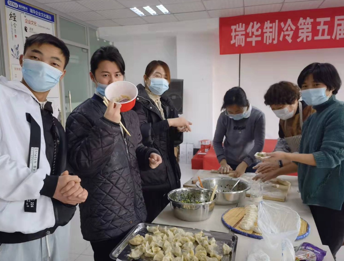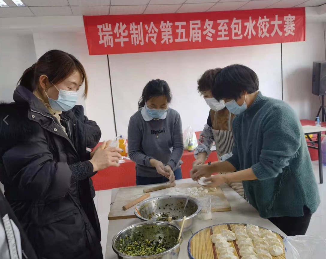 2021年12月21日,山東瑞華制冷設備有限公司舉行第五屆冬至包水餃比賽活動,這也是連續第五年冬至節,大家一起包餃子,吃餃子慶祝。有和面的,有和餡的,有搟皮的,比賽項目有:搟面皮 ,包餃子 ,包餃子接龍,還有最佳口味以及吃餃子比賽 。大家一起展示廚藝,共同度過了一個愉快的冬至節。